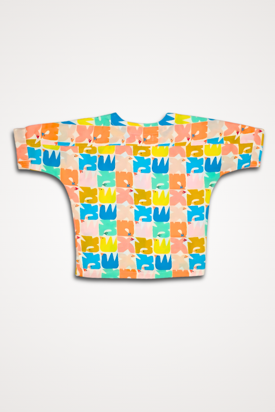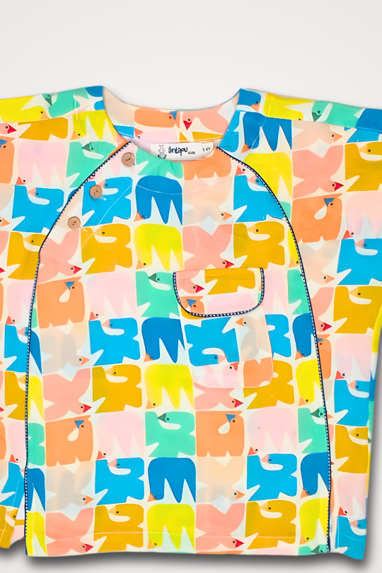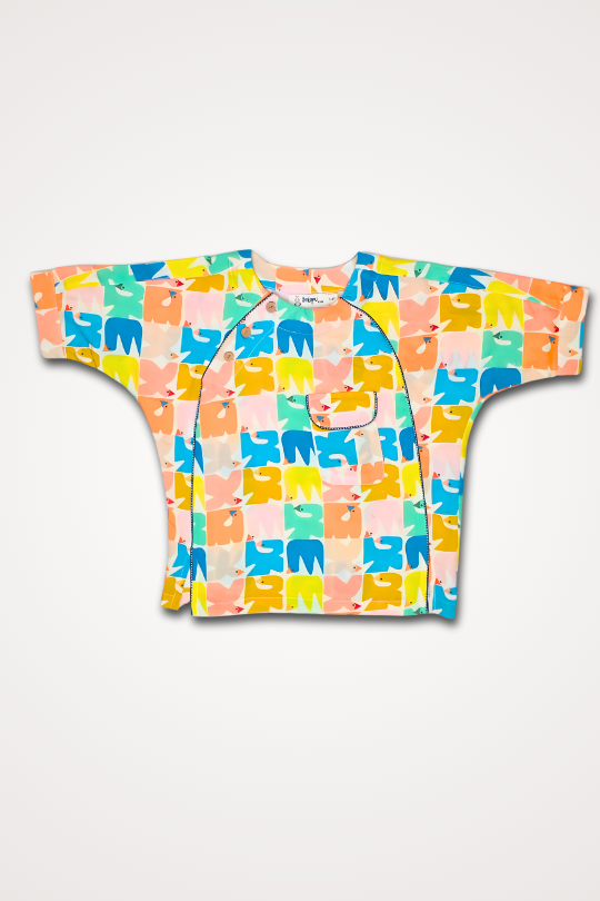 Graceful, quirky, and totally one-of-a-kind—just like your little one! This charming panel shirt features a modern swan block print in warm sunset tones and cool aqua pops. It’s made from breezy Viscose Linen for all-day play and cozy cuddles, with an easy snap-front design for fast changes. A whimsical pick for tiny trendsetters who love to stand out!